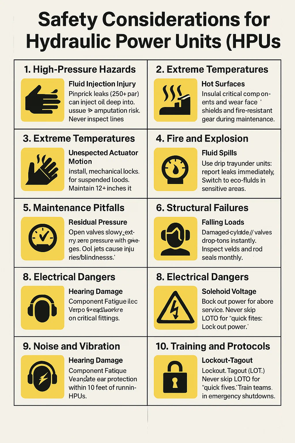 Нарушение слуха: Шестеренные насосы издают звук 85 дБ. Обязательная защита органов слуха в пределах 10 футов от работающих HPU.
